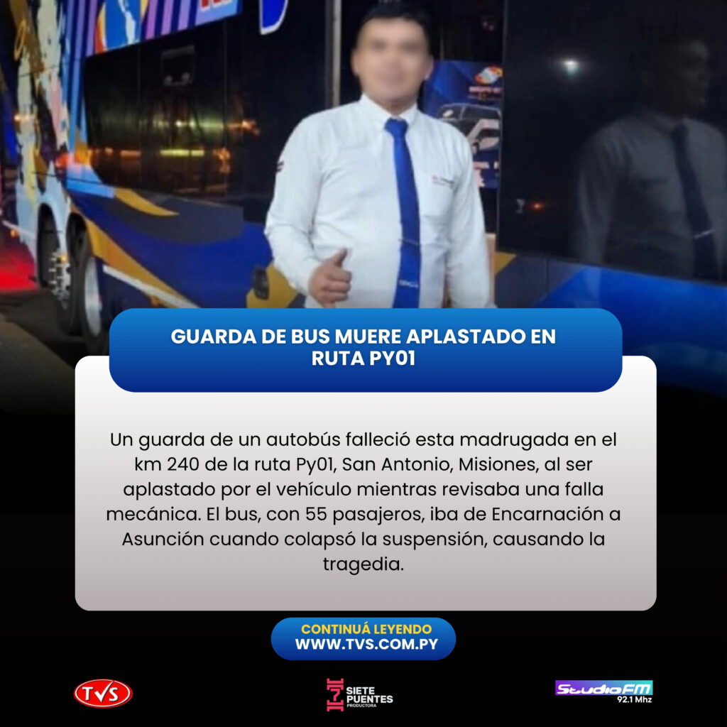 Un fatal accidente ocurrió esta madrugada en la ruta Py01, cuando el guarda de un autobús de transporte público murió aplastado al intentar revisar una falla mecánica en la parte trasera del vehículo.