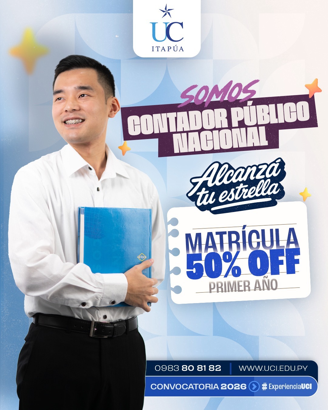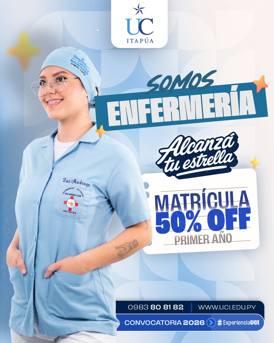 Durante todo el mes de diciembre, la universidad ofrece una promoción especial del 50% de descuento en la matrícula. Además, se encuentran disponibles becas de excelencia académica para los mejores promedios de los colegios de la región, que cubren un 50% de la matrícula y la cuota del primer año.